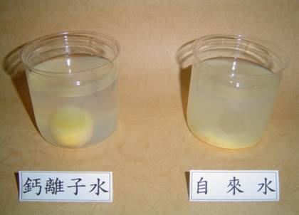 (注1):ph质7.5环境,不利细菌繁殖。 (注2):浸泡碱性水的蛋黄,会被离子水所包覆并变大,最长时间可达10天才会破损。 …置放自来水之蛋,因为高蛋白液的分解酵素快速增生,约2-3天就会溶成腥臭黄水。 |