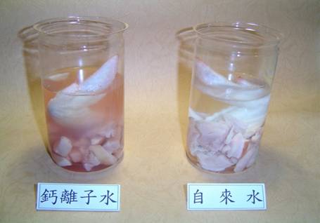 切片的苹果不易变黑,烹煮的青菜不会变黄;..连供桌的鲜花都因浸泡离子钙水而让花期开得艳丽,这都要归功于丰富的矿物质,与高含氧的分子特性。 |